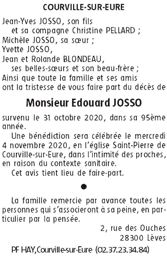 Décédé à Fontaine-la-Guyon (28190, France) le samedi 31 octobre 2020 à l'âge de 94 ans