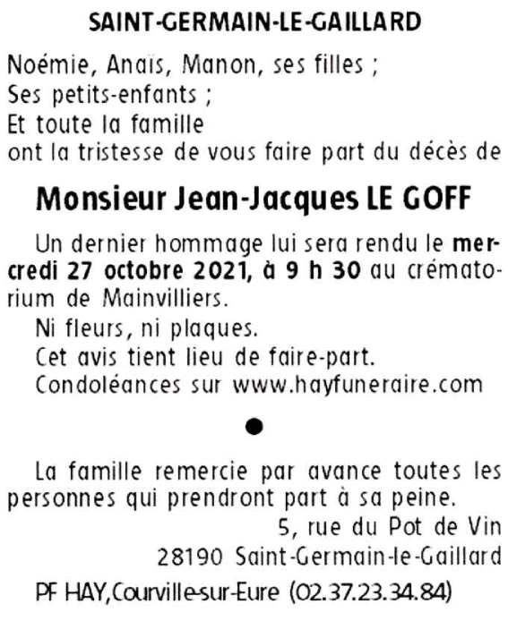 Décédé à Saint-Germain-le-Gaillard (28190, France) le lundi 18 octobre 2021 à l'âge de 60 ans