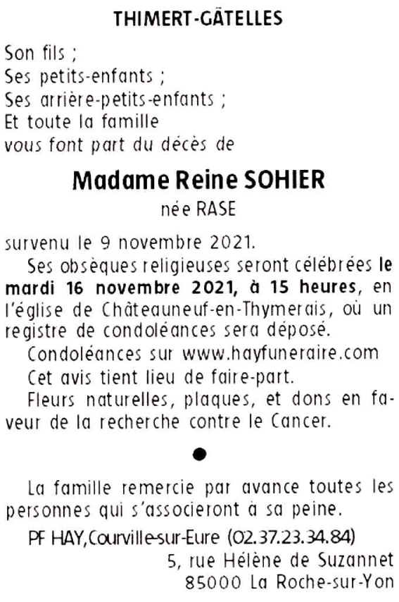 Madame Reine SOHIER née RASE
