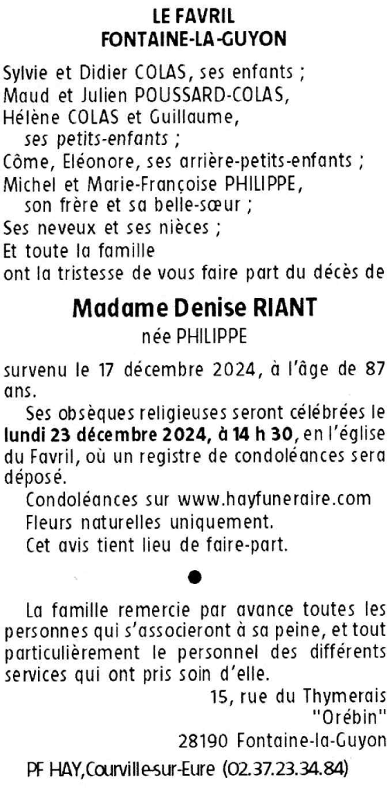 Décédée à Mainvilliers (28300, France) le mardi 17 décembre 2024 à l'âge de 87 ans