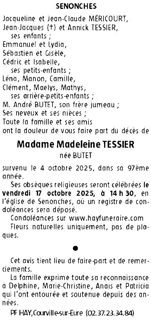 Décédée à Senonches (28250, France) le samedi 4 octobre 2025 à l'âge de 96 ans