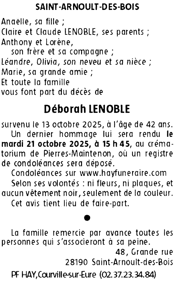 Décédée à Saint-Arnoult-des-Bois (28190, France) le lundi 13 octobre 2025 à l'âge de 42 ans