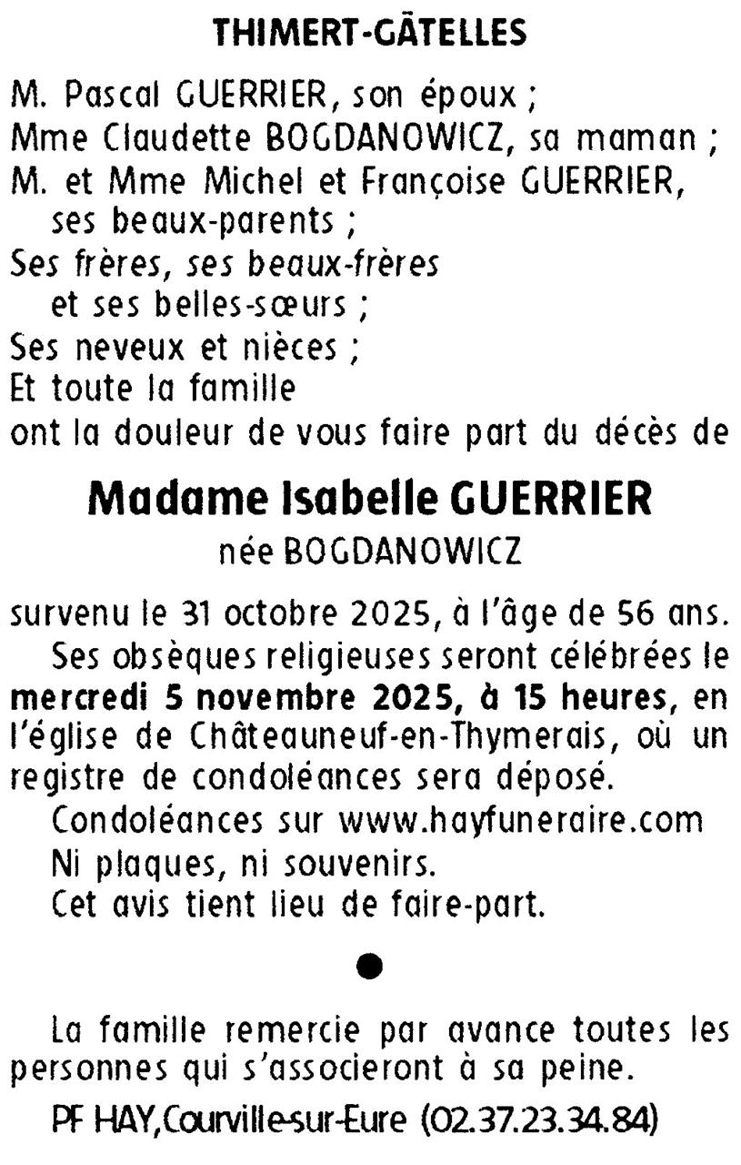 Madame Isabelle GUERRIER née BOGDANOWICZ