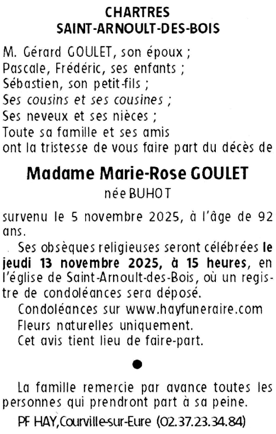 Madame Marie-Rose GOULET née BUHOT