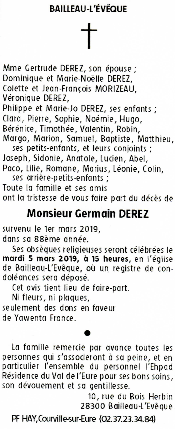 Décédé à Chartres (28000, France) le vendredi 1 mars 2019 à l'âge de 87 ans