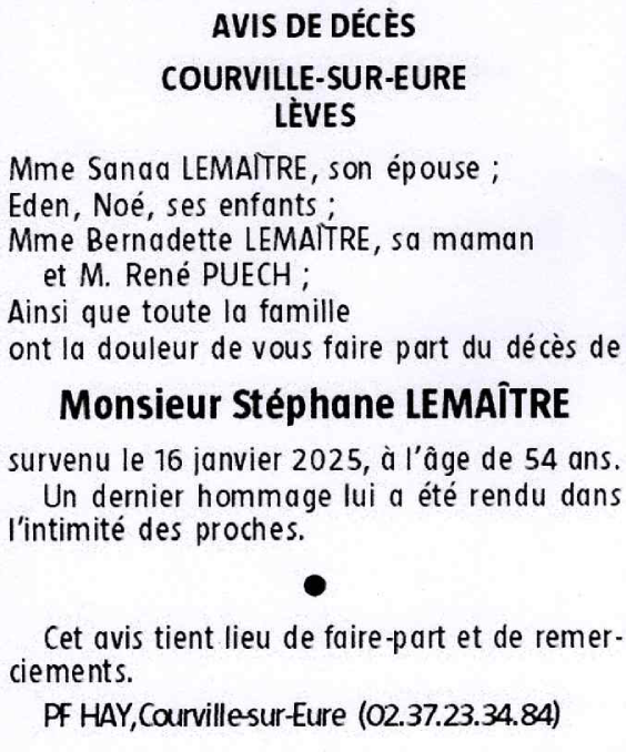 Décédé à Mainvilliers (28300, France) le jeudi 16 janvier 2025 à l'âge de 54 ans