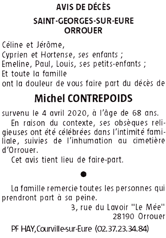 Décédé à Vernouillet (28500, France) le samedi 4 avril 2020 à l'âge de 68 ans