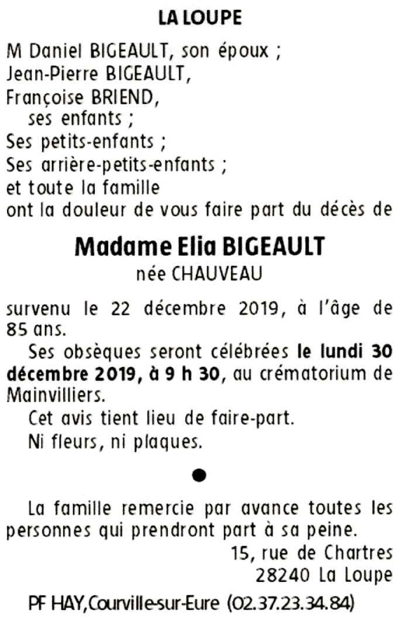 Madame Elia BIGEAULT née CHAUVEAU