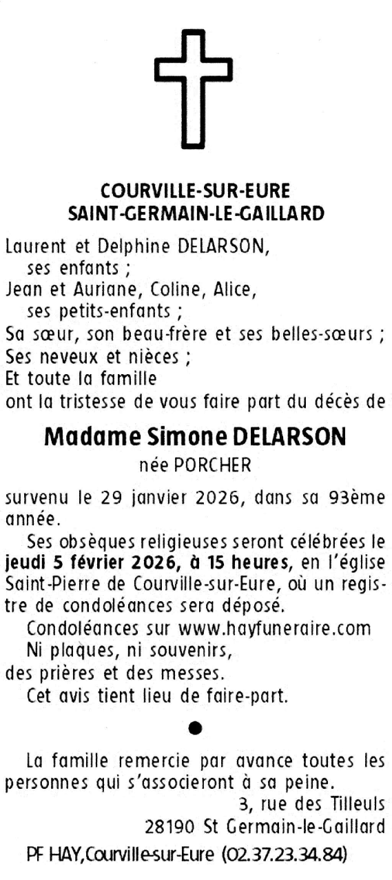 Madame Simone DELARSON née PORCHER
