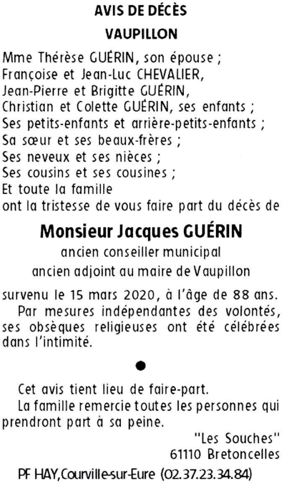 Décédé à Nogent-le-Rotrou (28400, France) le dimanche 15 mars 2020 à l'âge de 88 ans