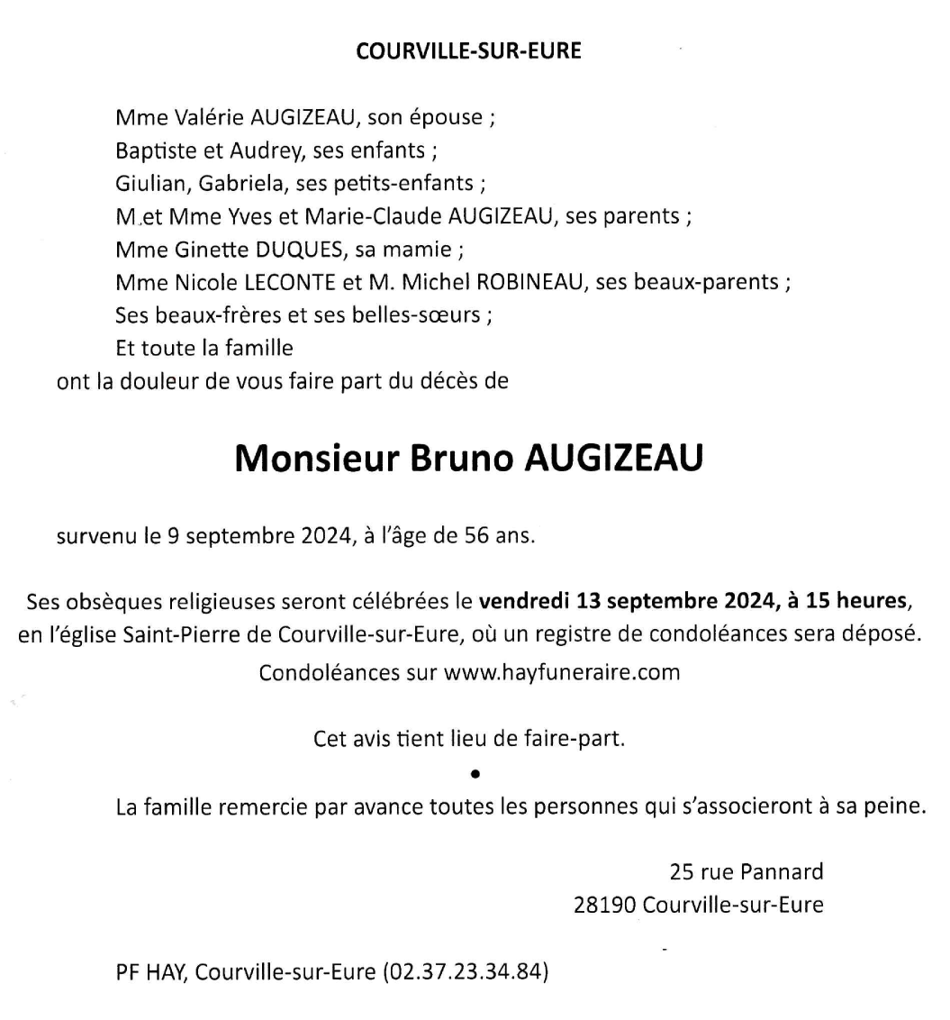 Décédé à Courville-sur-Eure (28190, France) le lundi 9 septembre 2024 à l'âge de 56 ans