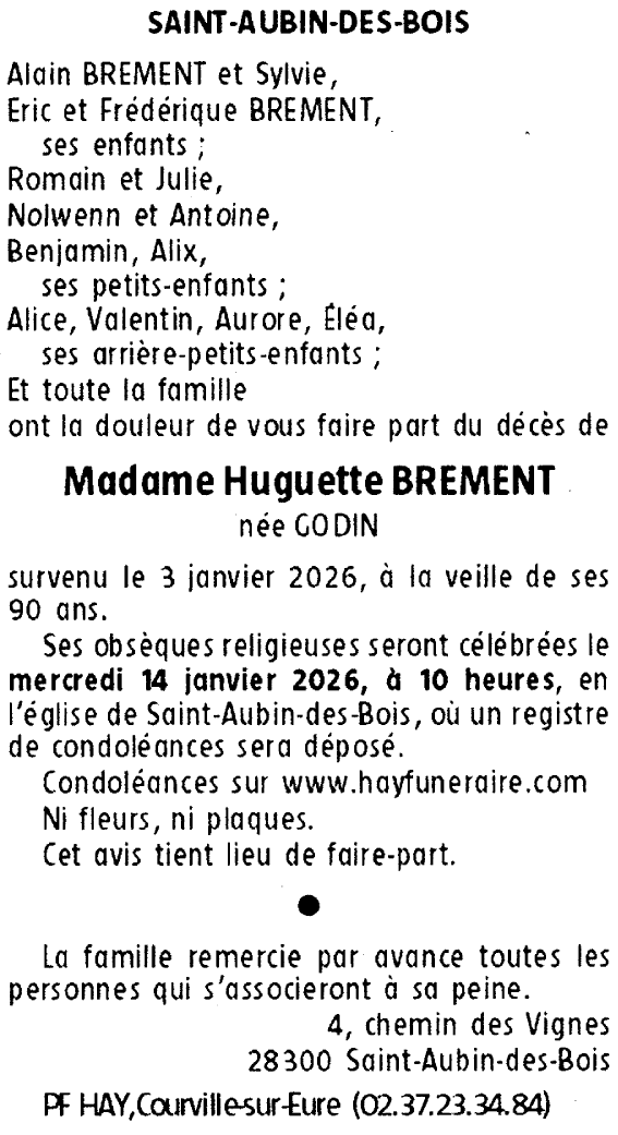 Décédée à Le Coudray (28630, France) le samedi 3 janvier 2026 à l'âge de 89 ans