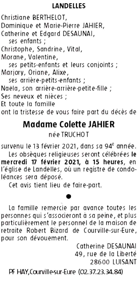 Madame Colette JAHIER née TRUCHOT