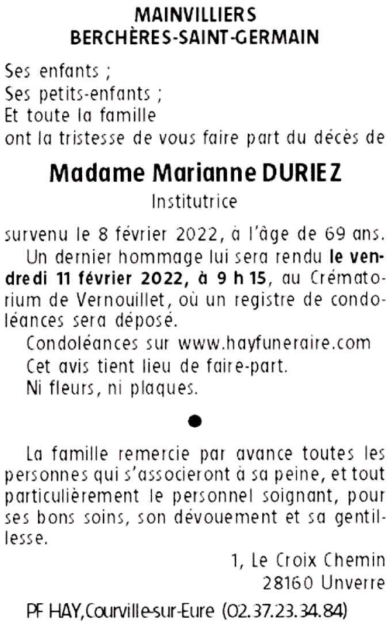 Madame Marianne DURIEZ née LEBLANC