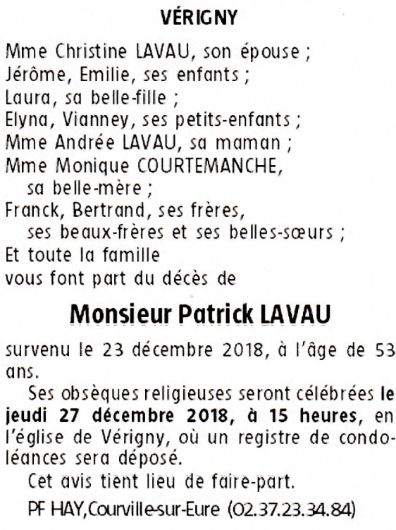 Décédé à Le Coudray (28630, France) le dimanche 23 décembre 2018 à l'âge de 53 ans