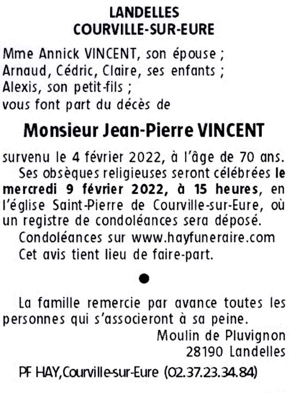 Décédé à Mainvilliers (28300, France) le vendredi 4 février 2022 à l'âge de 70 ans