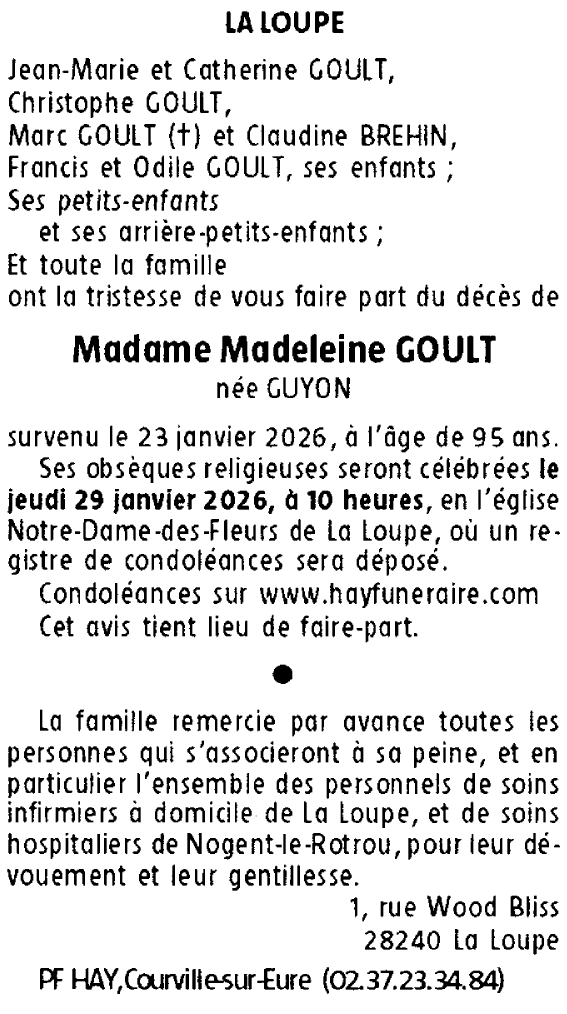 Madame Madeleine GOULT née GUYON