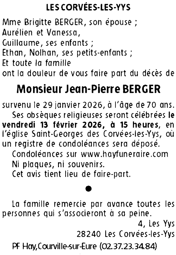Décédé à Les Corvées-les-Yys (28240, France) le jeudi 29 janvier 2026 à l'âge de 70 ans