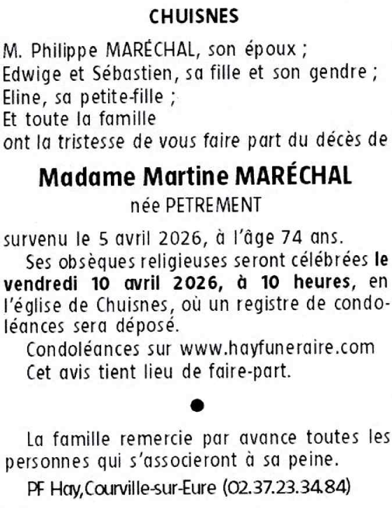 Madame Martine MARÉCHAL née PETREMENT