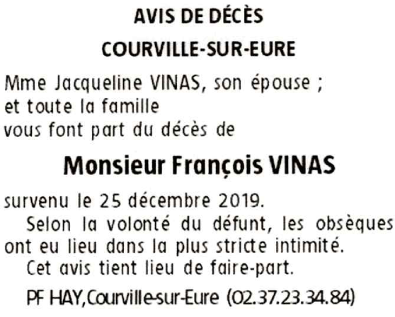 Décédé à Mainvilliers (28300, France) le mercredi 25 décembre 2019 à l'âge de 73 ans