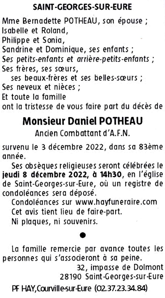 Décédé à Le Coudray (28630, France) le samedi 3 décembre 2022 à l'âge de 82 ans