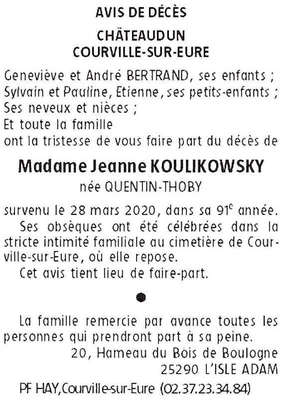 Jeanne KOULIKOWSKY née QUENTIN