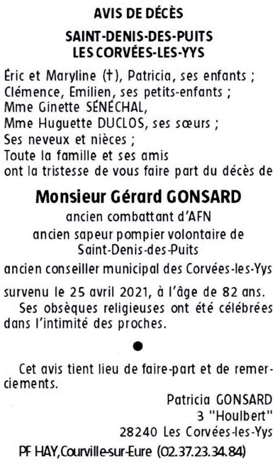 Décédé à Le Coudray (28630, France) le dimanche 25 avril 2021 à l'âge de 82 ans