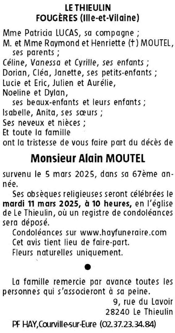 Décédé à Le Coudray (28630, France) le mercredi 5 mars 2025 à l'âge de 66 ans
