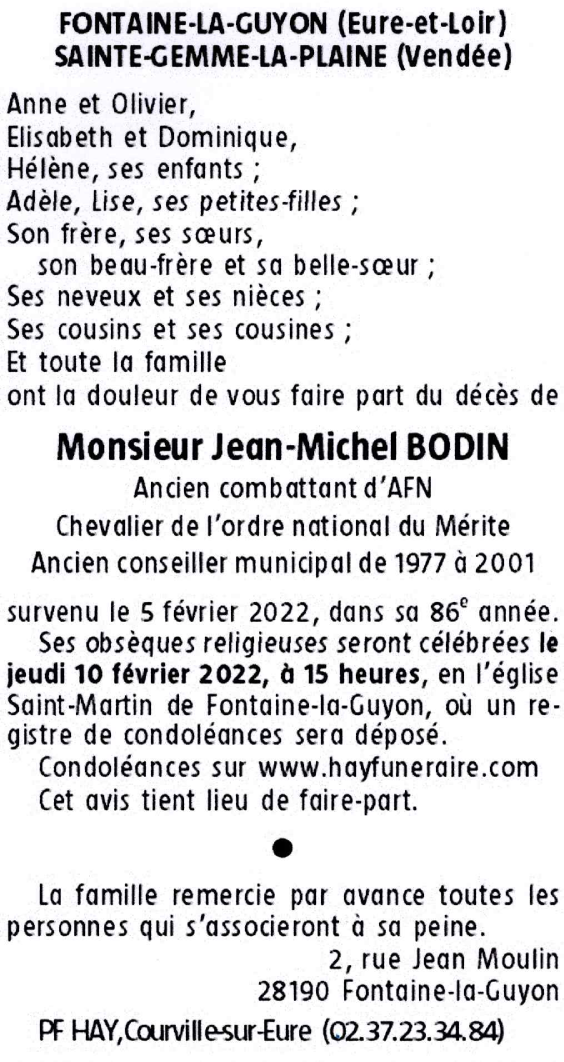 Décédé à Le Coudray (28630, France) le samedi 5 février 2022 à l'âge de 85 ans
