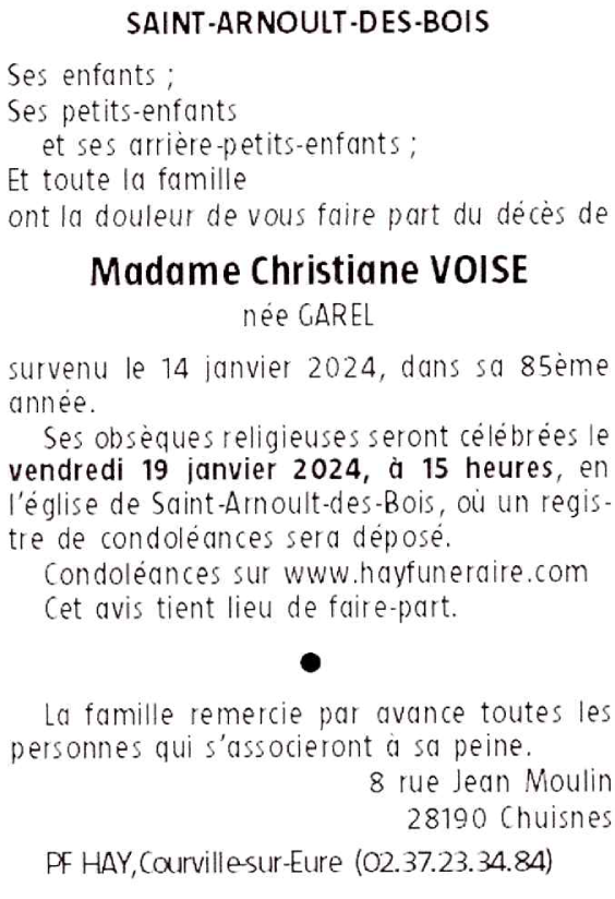 Madame Christiane VOISE née GAREL