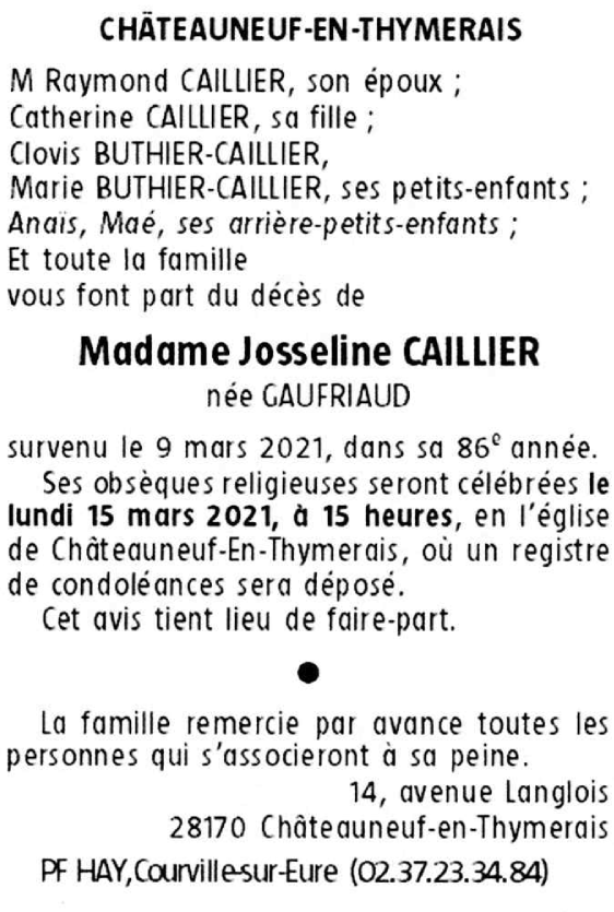 Madame Josseline CAILLIER née GAUFRIAUD