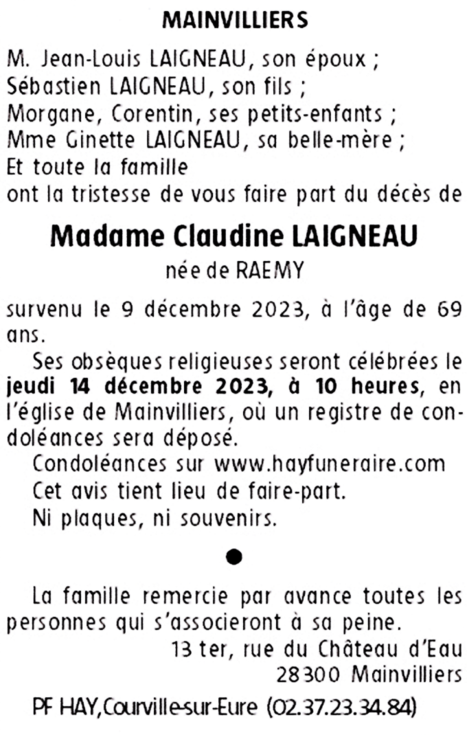 Epouse de Monsieur Jean-Louis LAIGNEAU