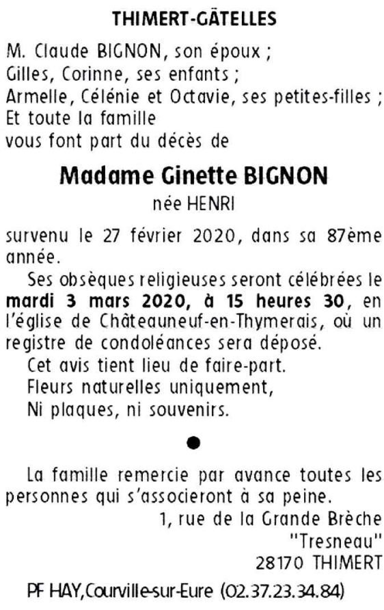 Madame Ginette BIGNON née HENRI