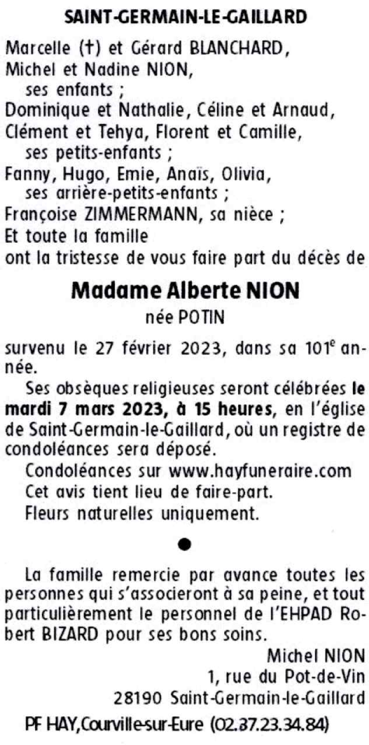 Madame Alberte NION née POTIN