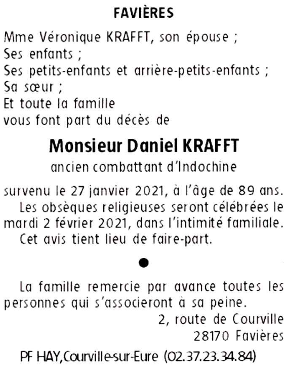 Décédé à Le Coudray (28630, France) le mercredi 27 janvier 2021 à l'âge de 89 ans